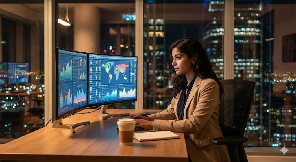 While her peers are buried in spreadsheets doing manual analysis for eighty hours, she deploys the exact same four-stage cognitive framework: